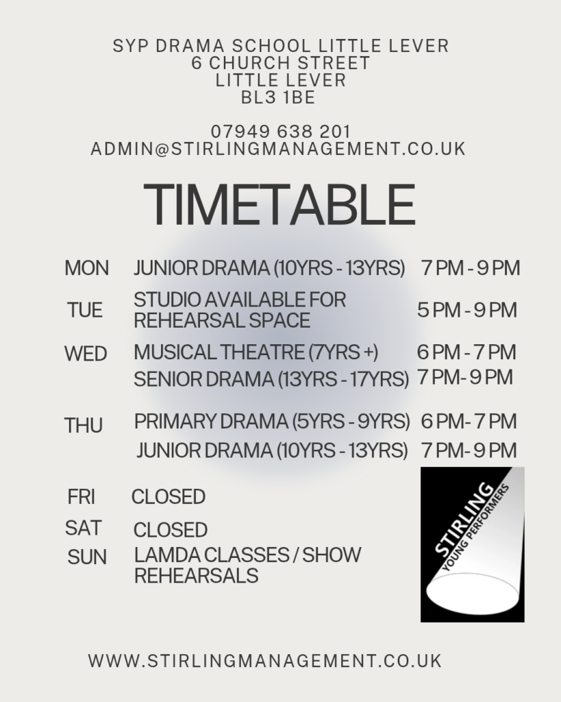 Drama Classes for Children here at Stirling Management are perfect for self-confidence. We teach the secrets of acting whilst having FUN!